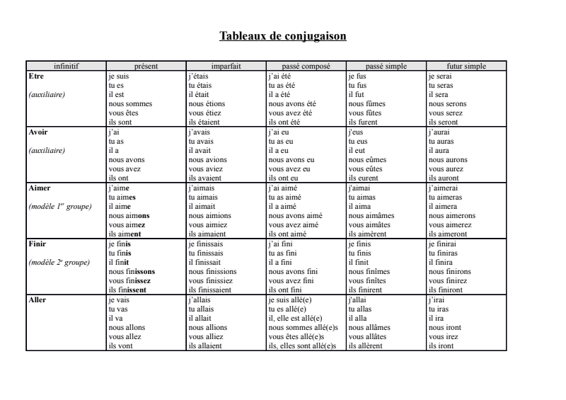 Tableau De Conjugaison